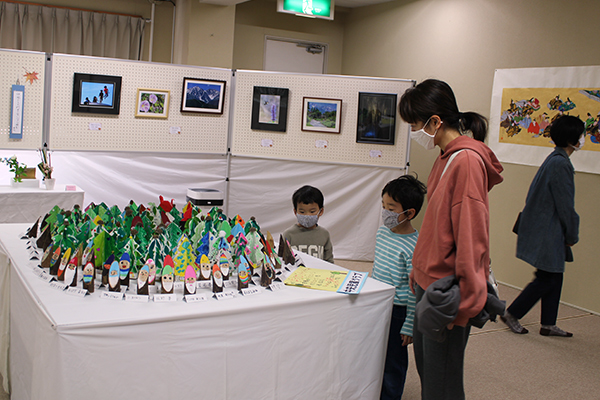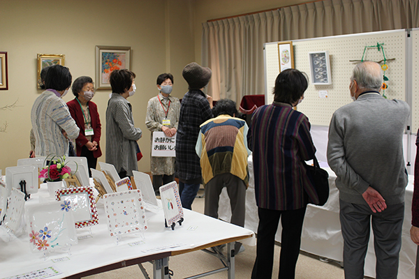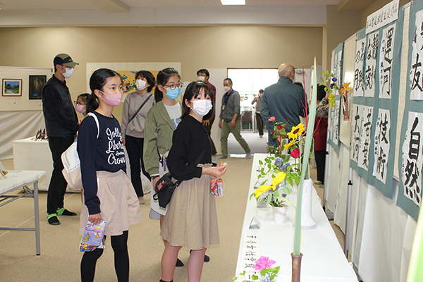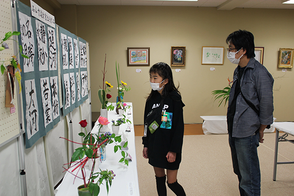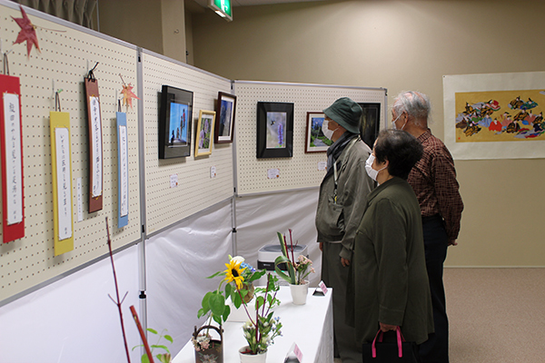 毎年、中央小の芳斎分校体育館・運動場で盛大に文化祭を行っていたのですが、現在建替え工事を行っているため使用することが出来ず、現芳斎公民館の限られたスペースの中で作品展を開催しました。様々な作品が集まり、来場者を楽しませて頂きました。