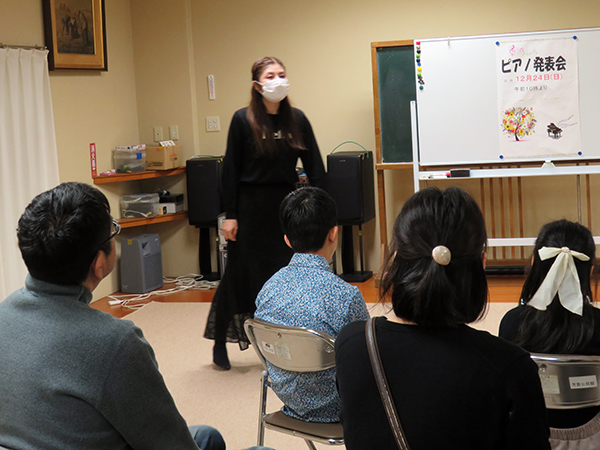 アーカイブArchives R05.12.24(日)ピアノ発表会 ピアノ教室の生徒さんたちが練習の成果を家族の方たちに披露しました。 自分の好きな曲と真剣に取り組んで、丁寧に演奏する姿に感動しました。 流れてくる音♪を聞いてこれからもずっとピアノを弾き続けて欲しいなあと思いました。 アーカイブ トップ